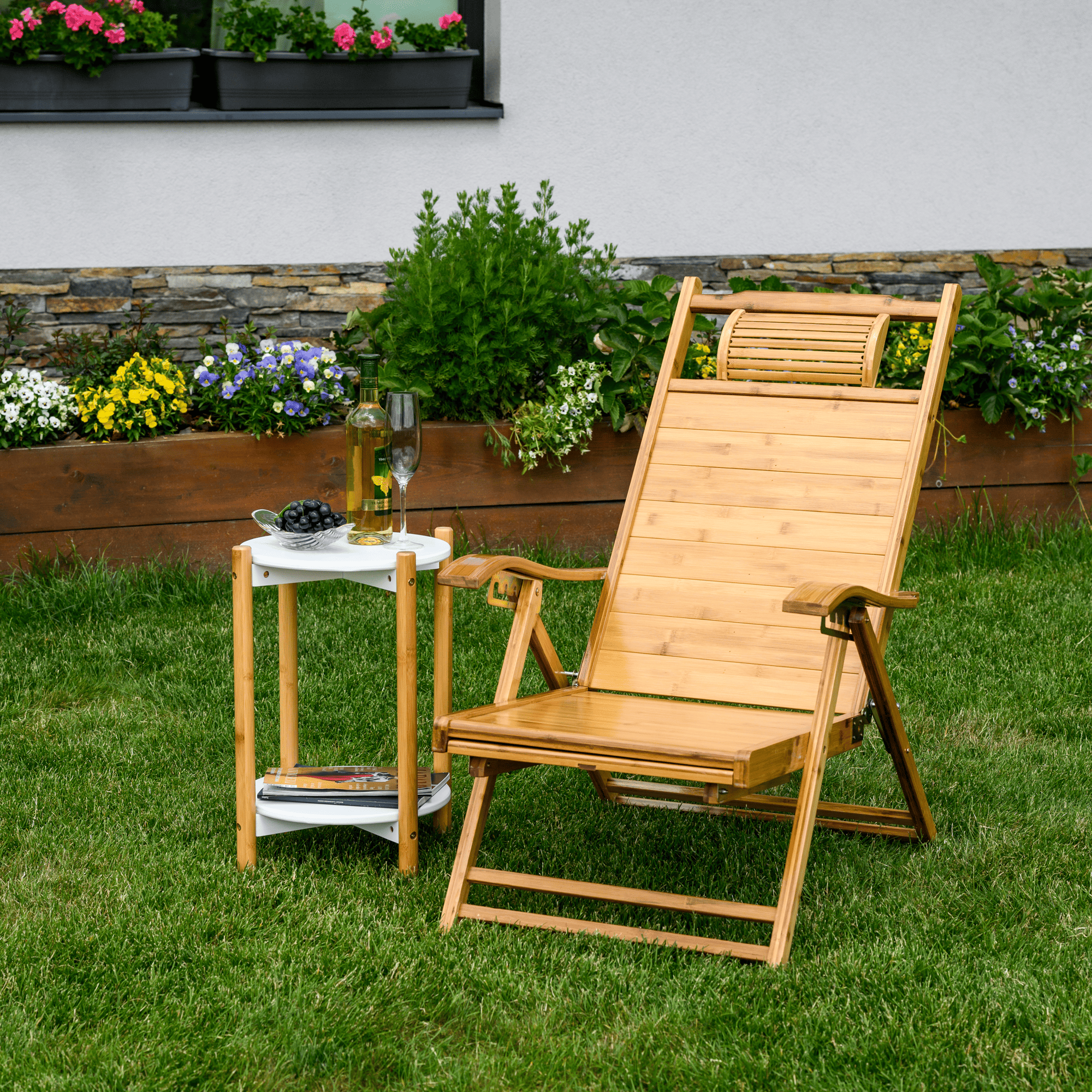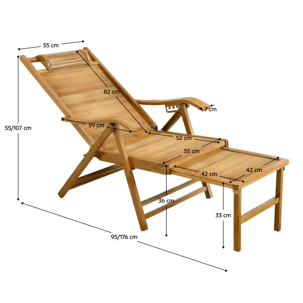 Objavte dokonalý relax vo vašej záhrade, na terase či balkóne s polohovacím kreslom alebo ležadlom VARDON. Spája v sebe prírodnú krásu, funkčnosť a maximálne pohodlie, vďaka čomu sa stane obľúbeným spoločníkom pri chvíľach oddychu pod holým nebom. Vyrobené je z masívneho bambusového dreva v prírodnom odtieni. O vaše pohodlie sa postará opierka hlavy, ergonomicky tvarované opierky na ruky pre uvoľnenie napätia v ramenách a výsuvná podnož, ktorú si podľa potreby jednoducho vysuniete alebo zasuniete.